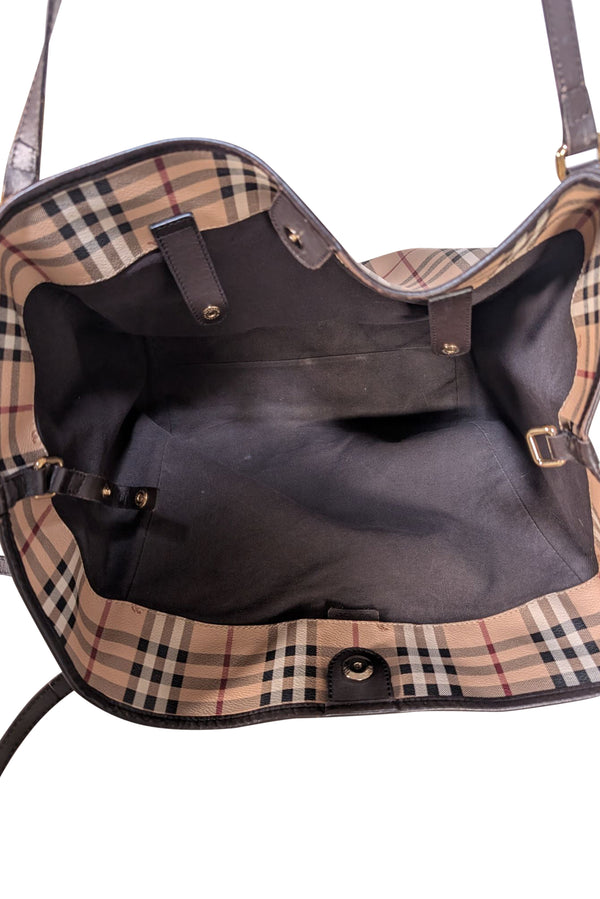 Transform your daily look with this iconic Burberry shoulder bag, featuring the brand’s signature beige, black, and red plaid pattern. The spacious large silhouette offers ample room for essentials while maintaining a refined, polished aesthetic. Crafted with Burberry’s renowned attention to detail, this versatile piece transitions seamlessly from work to weekend, making it a timeless investment for any wardrobe. The structured design and quality construction ensure durability and lasting appeal.