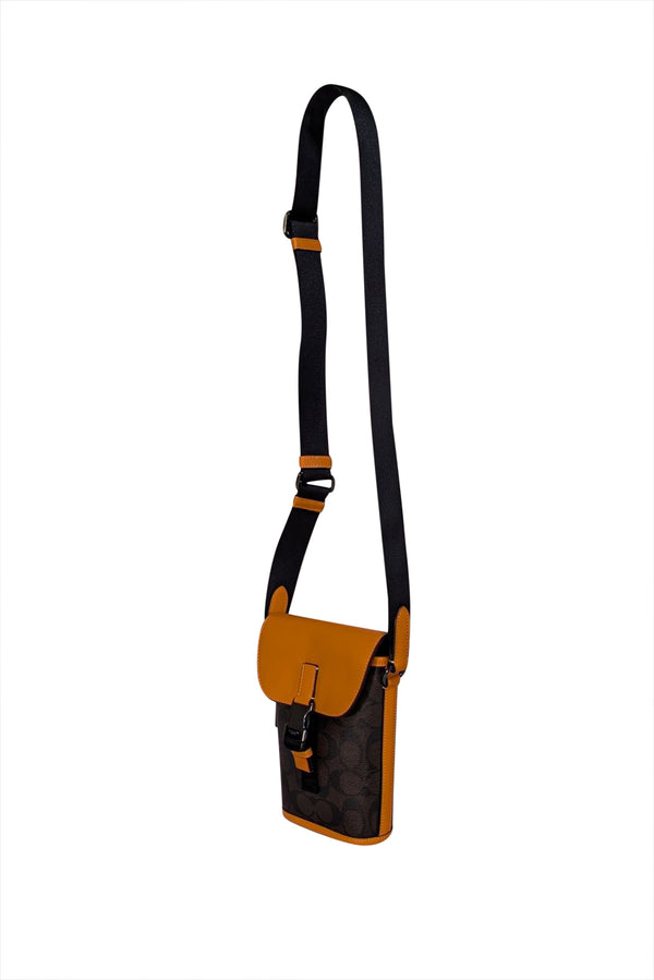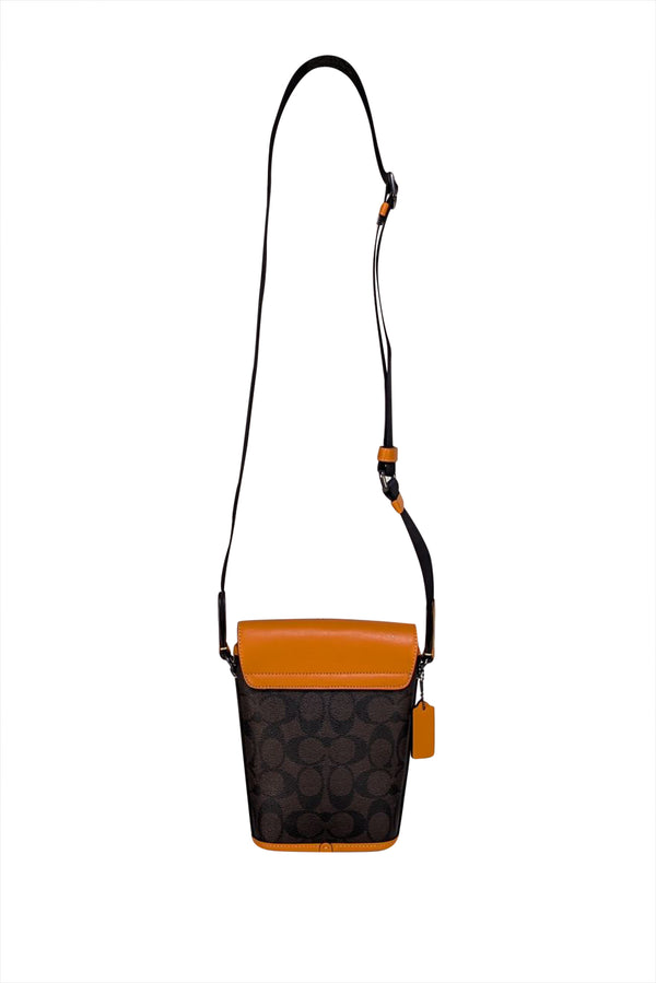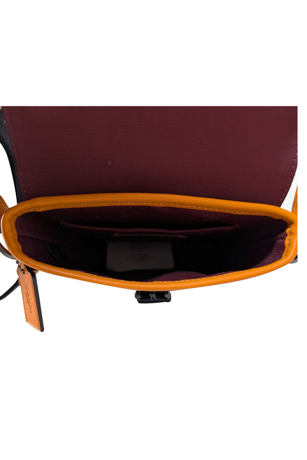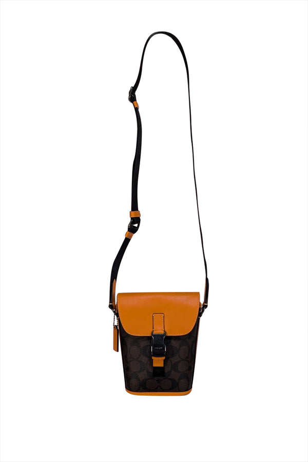 Make a bold statement with the Coach brown and black monogram crossbody bag, where classic meets contemporary. The signature brown and black monogram canvas provides timeless appeal, while the vibrant orange leather flap and trims inject a playful pop of color that steals the show. Designed for hands-free convenience, this crossbody style keeps your essentials within reach whether you’re running errands or exploring the city. The striking color-blocking creates an eye-catching look that proves Coach knows how to balance heritage with modern flair.