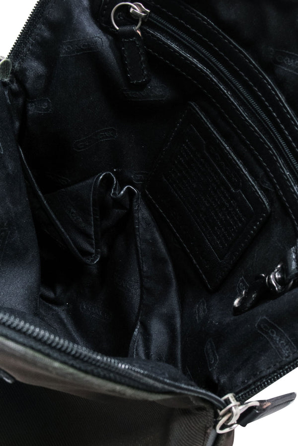 Carry all your essentials in style with this Coach mini backpack! Made with brown twill and black leather trims, it’s the perfect accessory for any adventure. Whether you’re a stylish it girl or just looking for a weekend essential, this backpack is both chic and functional. Pair it with a matching jogger set and cool sneakers for a trendy and effortless look.