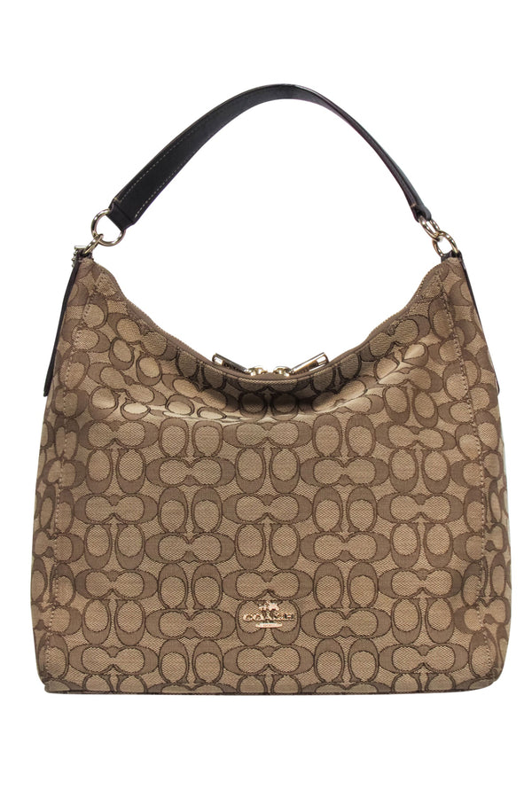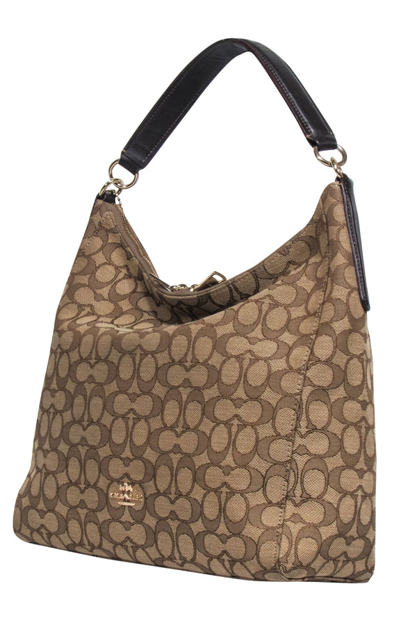 Score major style points with Coach’s classic hobo bag. The polished design features a sleek leather handle, gold-tone hardware, and a slouchy style that never goes out of fashion. Complete with Coach’s iconic monogram canvas in a versatile brown, it’s the perfect timeless accessory for any outfit.