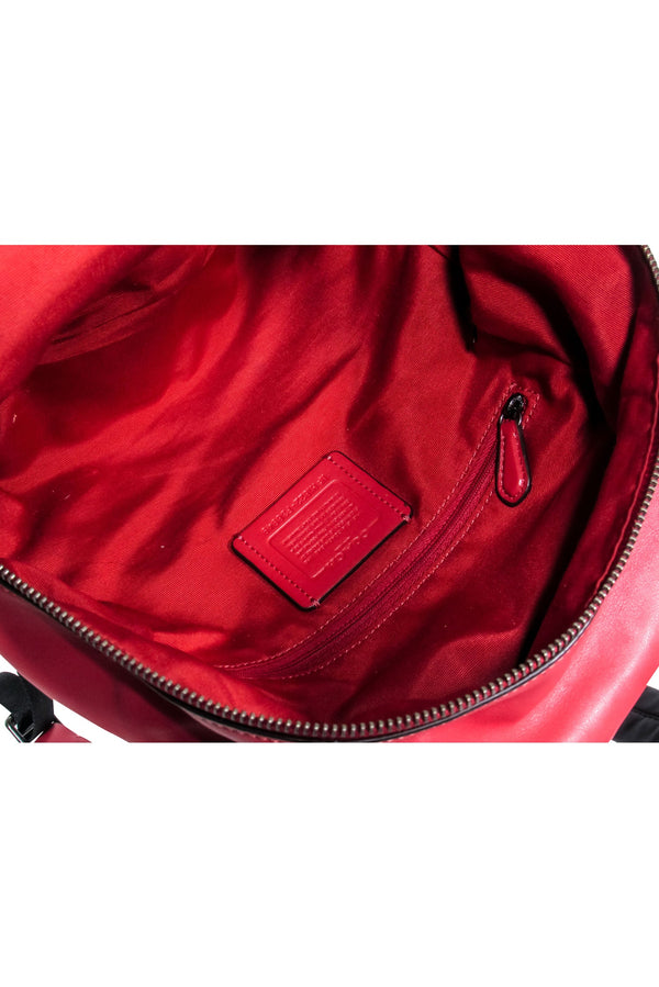 Get ready to tackle a “Sunday Funday” outing with Coach’s red and black gingham print medium “Charlie” backpack. Made with coated canvas and leather, this backpack is perfect for carrying all of your weekend essentials. It’s both stylish and practical, making it the perfect companion for any adventure!