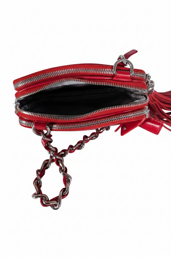 Unleash your inner rebel with this fiery red quilted leather crossbody, your new partner in crime for date nights and street-style adventures. The quilted texture adds dimension and luxury, while sleek silver hardware catches the light with every move. Sized just right to hold your essentials without the bulk, this bag swings effortlessly across your body for hands-free swagger. Daring, chic, and ready to turn every outing into a fashion moment.