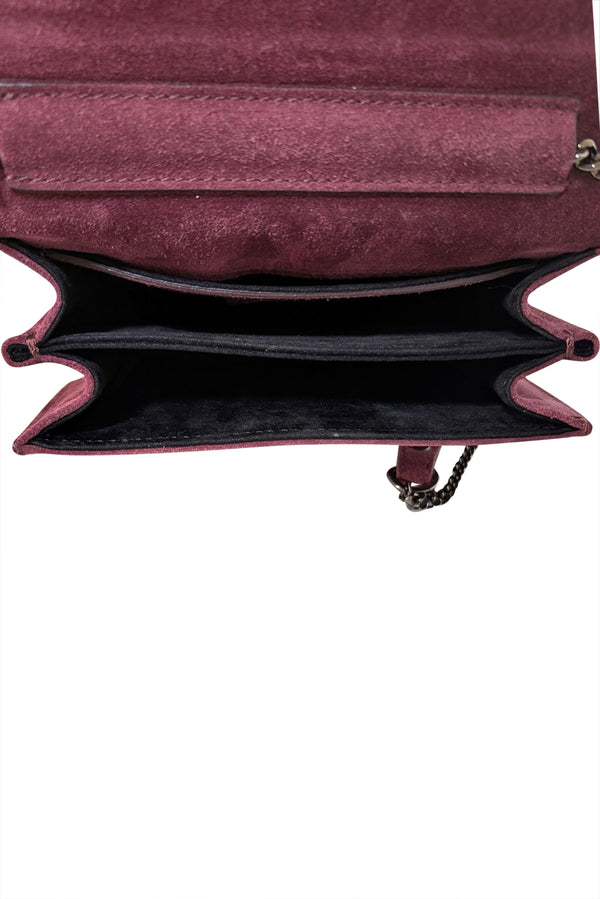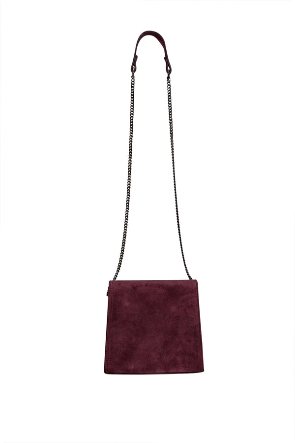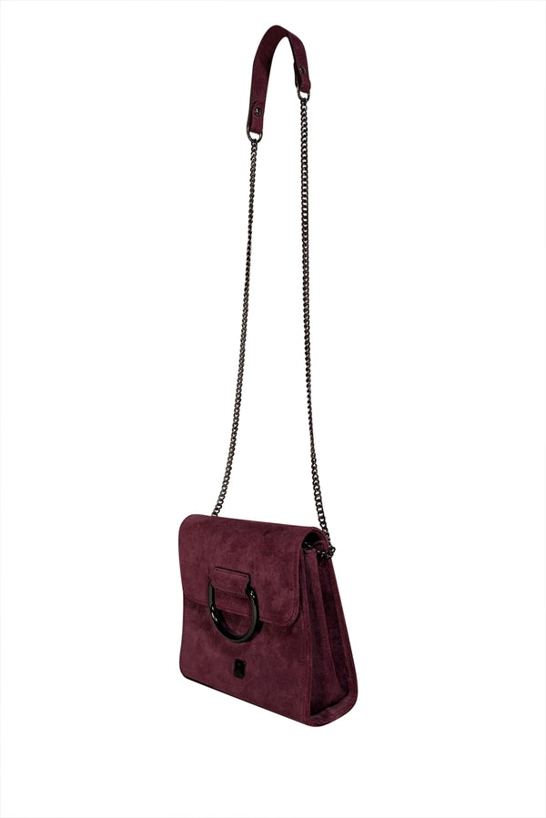 Discover timeless sophistication with this Hogl crossbody bag, showcasing luxurious plum purple suede in an opulent finish. The jewel-toned leather drapes elegantly across your body via a polished chain strap, offering effortless style for any occasion. Crafted with meticulous attention to detail, this bag combines refined aesthetics with practical functionality. The sumptuous suede texture invites touch while the rich color complements any wardrobe. An investment piece for those seeking understated luxury and enduring quality.