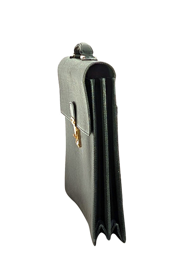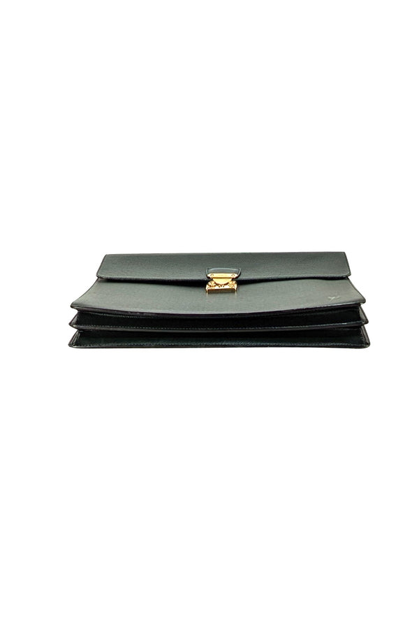 Step into the courtroom with confidence and style carrying this Louis Vuitton briefcase. Crafted from rich hunter green leather, inside and out, it offers luxurious sophistication with a pop of bold color. Gleaming gold hardware adds a touch of elegance, while its French craftsmanship ensures top-tier quality. Perfect for the boss babe who means business and isn’t afraid to show it.