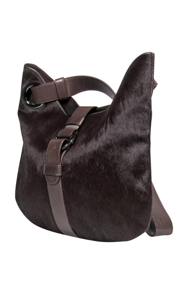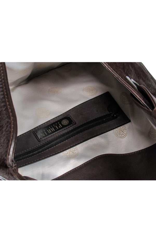 Add some unexpectred texture to any outfit with this glamorous shgoulder bag from Perrin! Made with soft horsehair and smooth leather, this is a unique purse fit for the fashionista in your life. Perfect for pairing with all your favorite cold weather favorites.