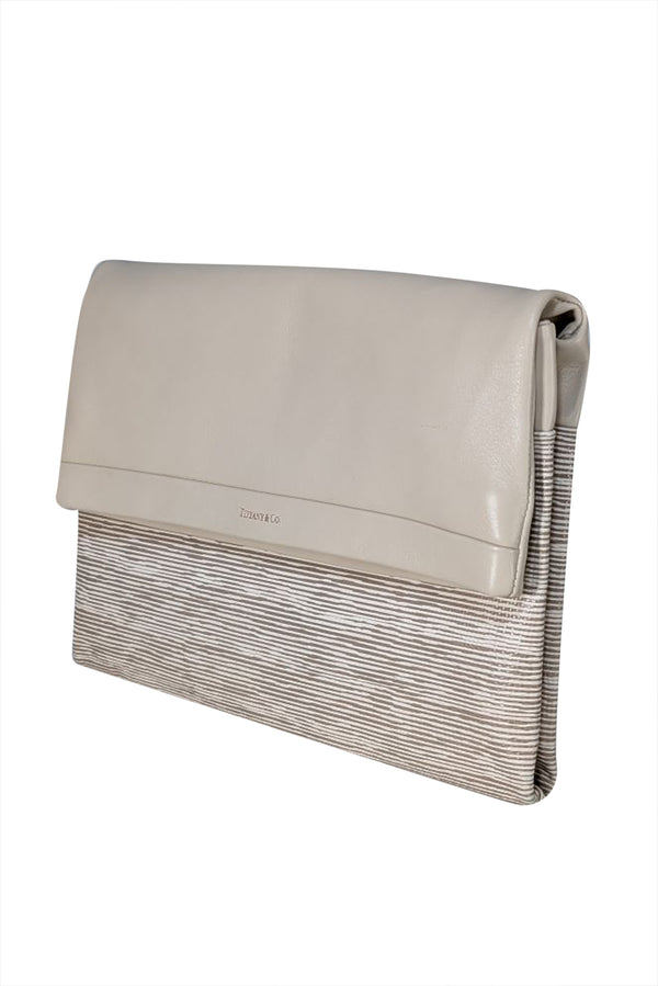 Slip into understated elegance with this Tiffany & Co. envelope clutch, where soft beige tones meet sophisticated texture. The mix of smooth and saffiano leather creates visual interest while keeping things effortlessly chic. Perfect for tucking essentials into your evening look or adding a touch of timeless luxury to your everyday carry. This is the kind of clutch that whispers good taste without shouting about it.