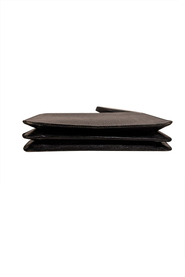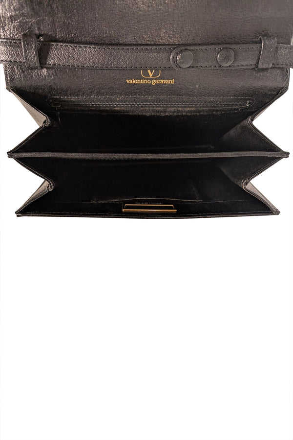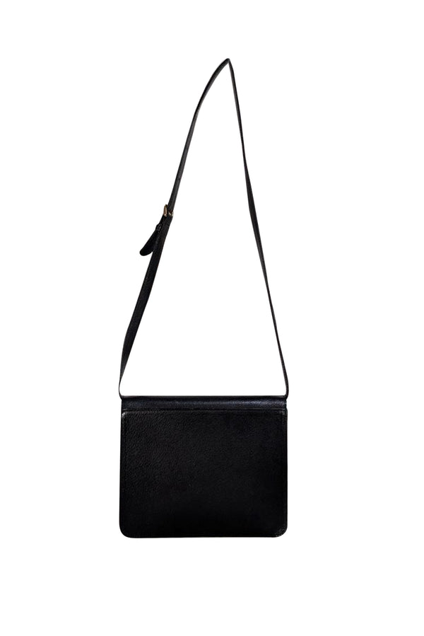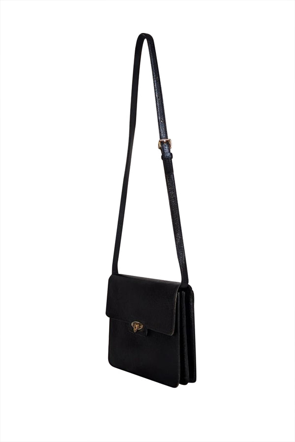Timeless elegance meets everyday practicality with this Valentino black leather crossbody bag. Crafted from supple leather, it features lustrous gold hardware that adds a touch of luxury to its clean, minimalist silhouette. The adjustable crossbody strap ensures comfortable wear, while the vintage-inspired design transcends seasonal trends. Perfect for those who appreciate understated sophistication and quality craftsmanship.