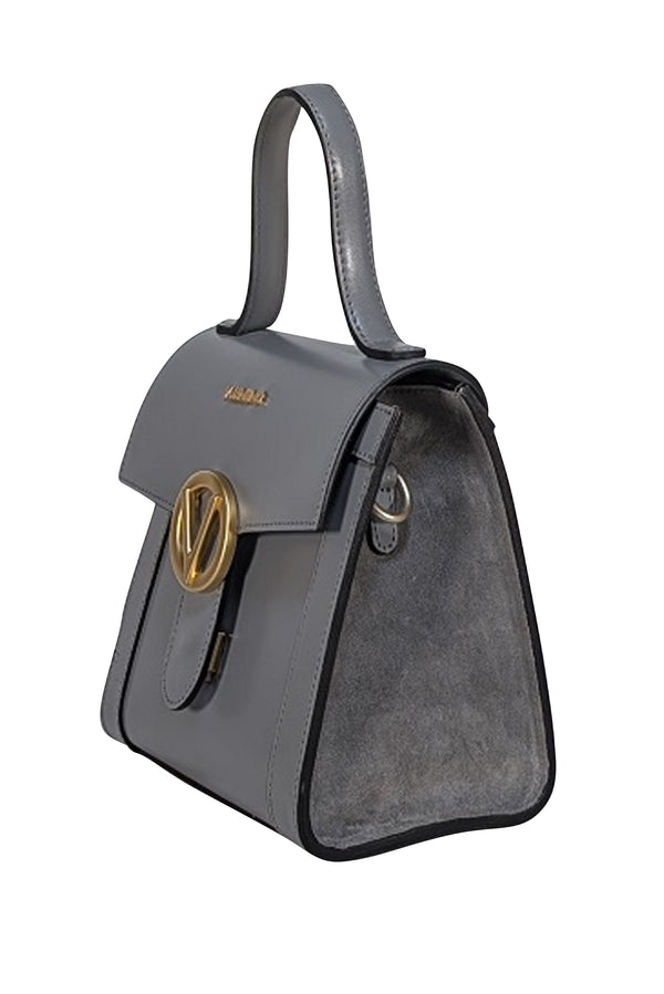 This Valentino by Mario Valentino top handle bag is a perfect mix of grey leather and suede, making it your new chic downtown darling. Its elegant design adds a touch of playful sophistication to any outfit. The sturdy handle ensures comfortable carrying all day long. Compact yet roomy enough for essentials, it’s ideal for city adventures or stylish meetups. Add a dash of fun and luxury to your look with this must-have accessory!