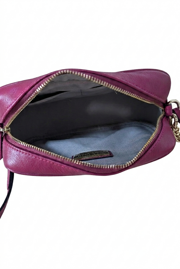Turn heads with this vibrant Valentino crossbody that’s impossible to miss. Rendered in rich magenta pink leather, this beauty features the iconic logo V front that announces your impeccable taste without saying a word. The crossbody silhouette keeps your hands free while keeping your essentials close, making it the perfect companion for everything from weekend adventures to night-out moments. Compact yet spacious, this bag proves that sometimes the boldest statement is the best one. Pure joy in leather form.